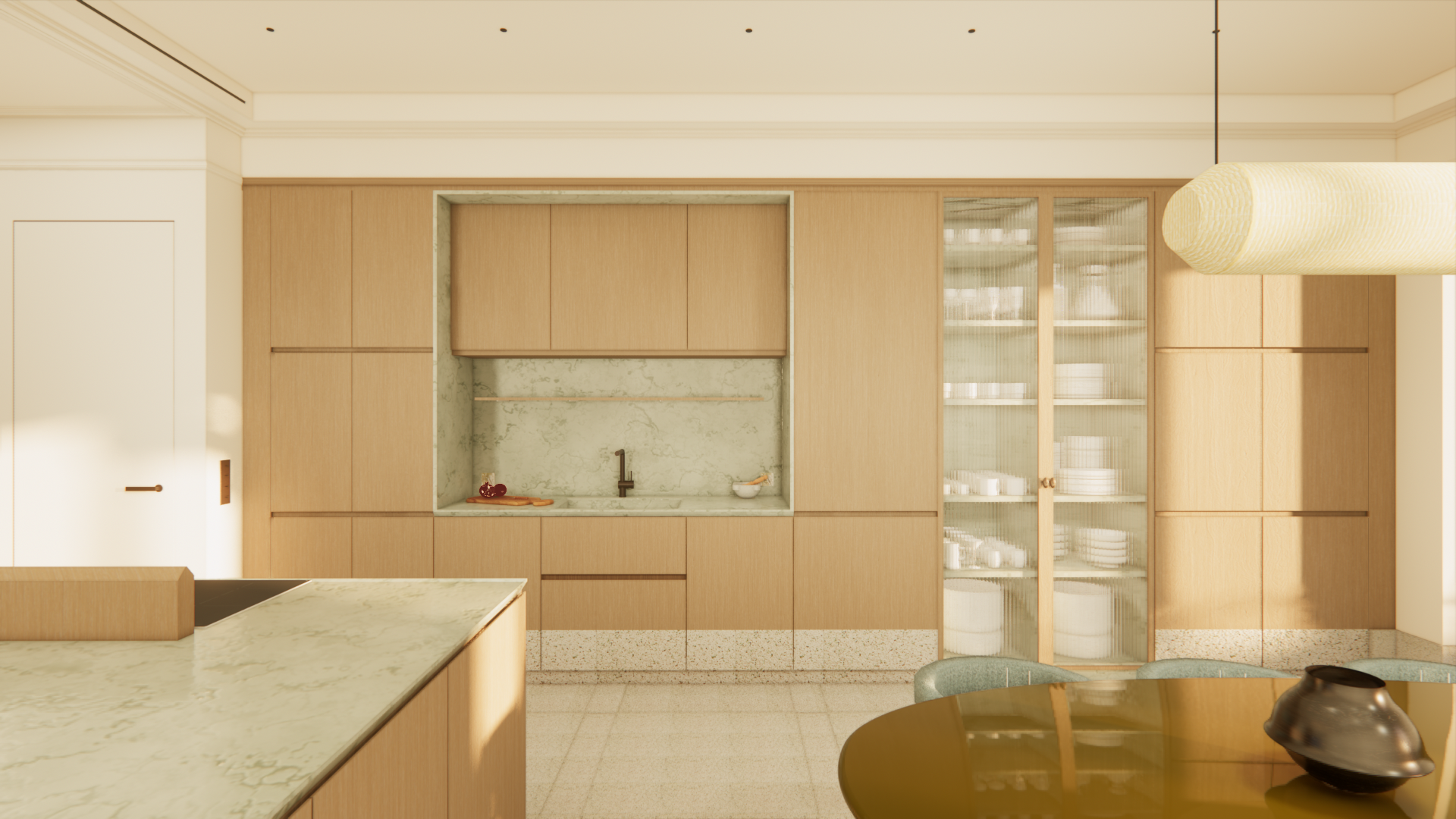 The Studio designs and decorates a large, high-end family apartment in the heart of Braga's historic center. The noble materials and mint green palette are an ode to Portuguese tradition, expressed through meticulous tile layouts within a beautifully designed space.
